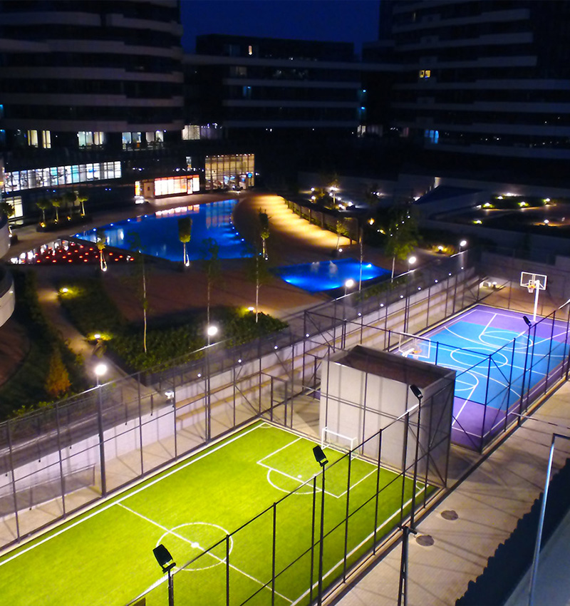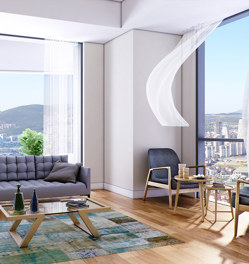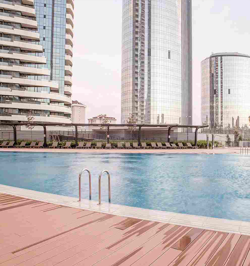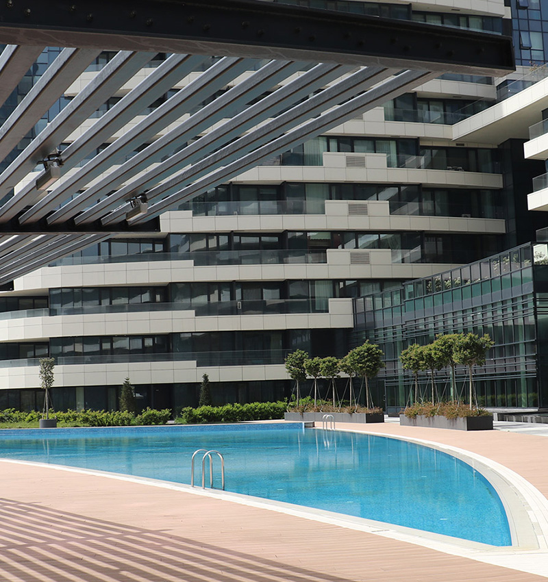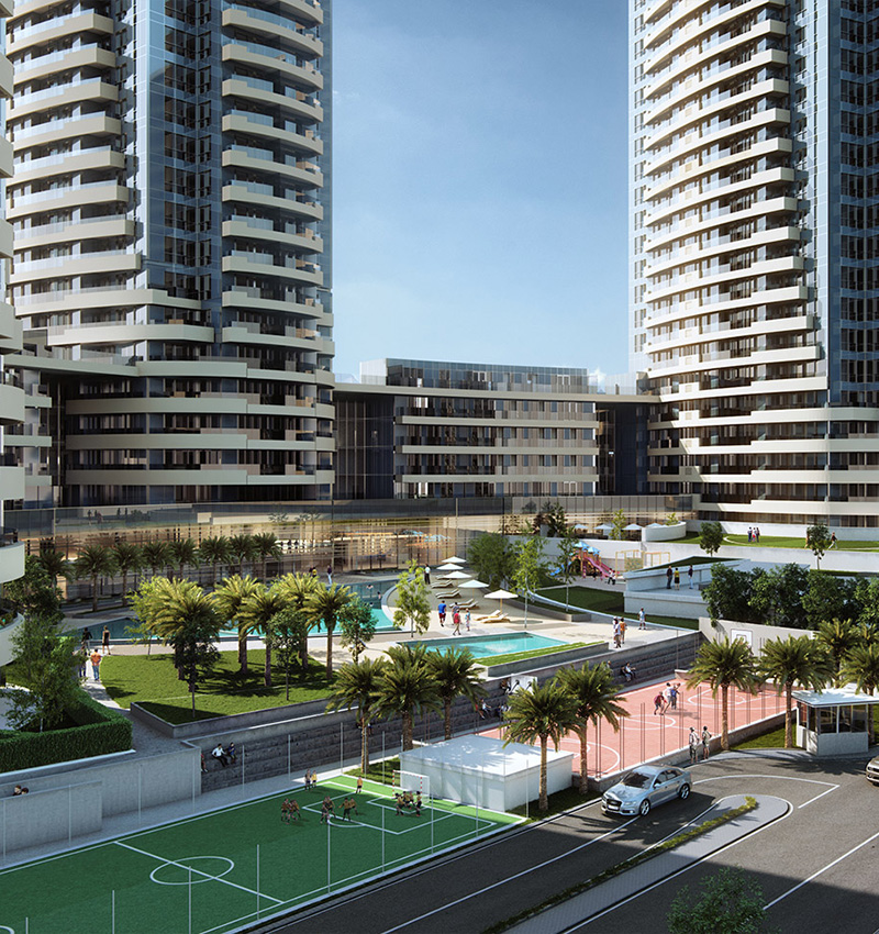 320 000 m2; 48 ila 42 kat sayısı arasında değişen 3 residence bloğu ve 28 ila 24 kat arasında değişen 2 adet ofis bloğu olmak üzere, 5 bloklu yüksek binalar